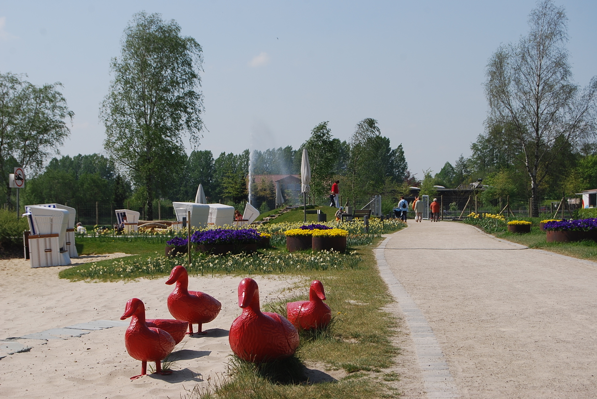 - Es gibt akustische Informationen (Hörsäulen) im Park.