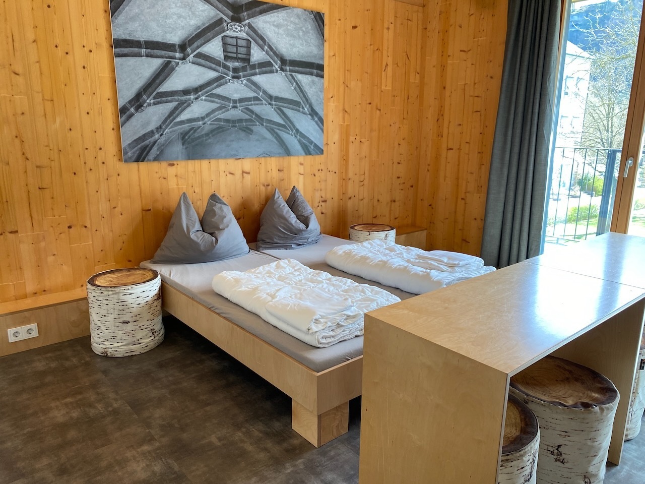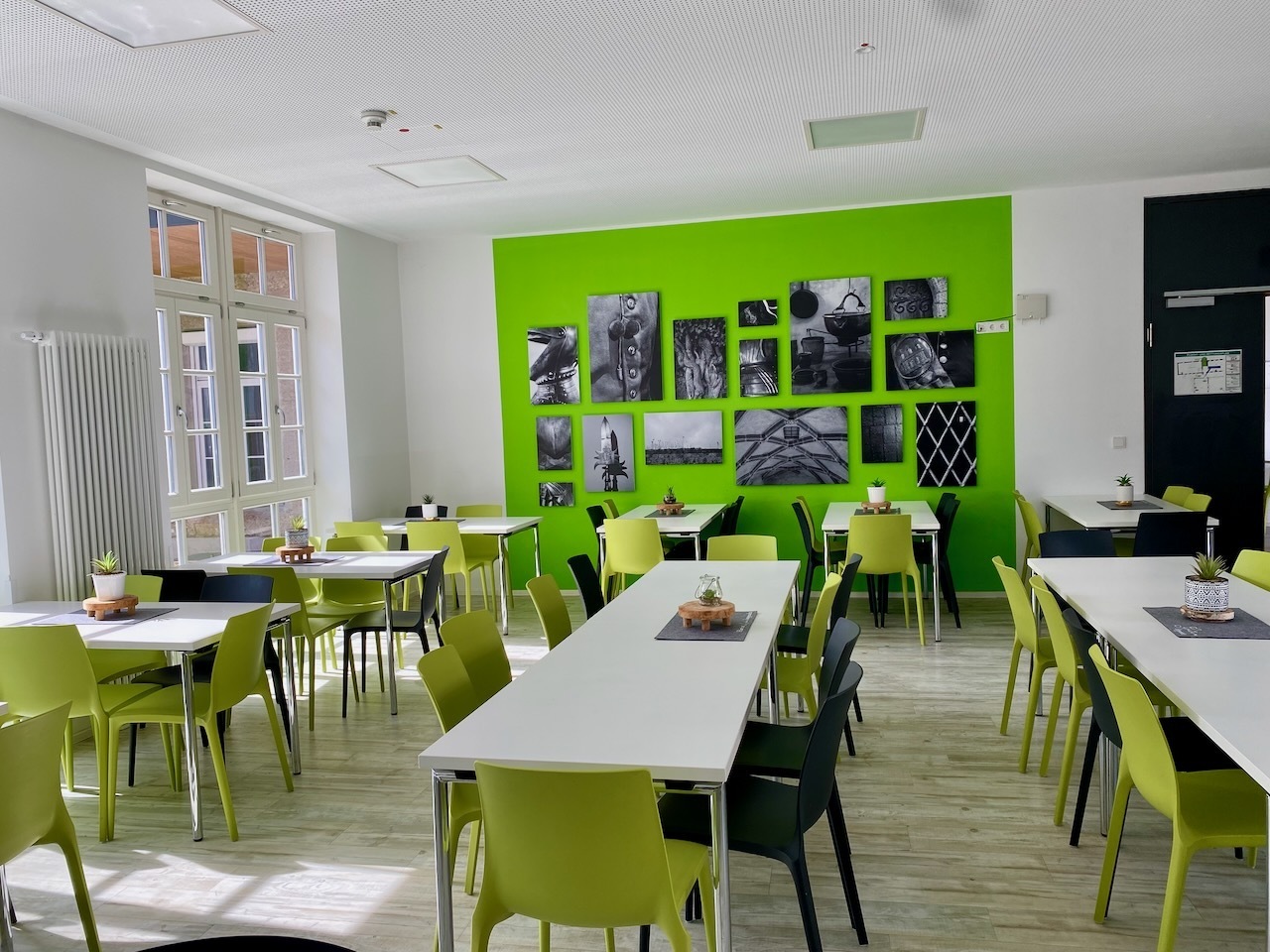 - Im Umfeld der Jugendherberge stehen kostenfreie Parkplätze zur Verfügung. Rollstuhlfahrer können nach Rücksprache im Hof parken. Zum be- und entladen können die Autos vor die Tür fahren. Der Außenweg zum Eingang ist leicht begeh- und befahrbar.