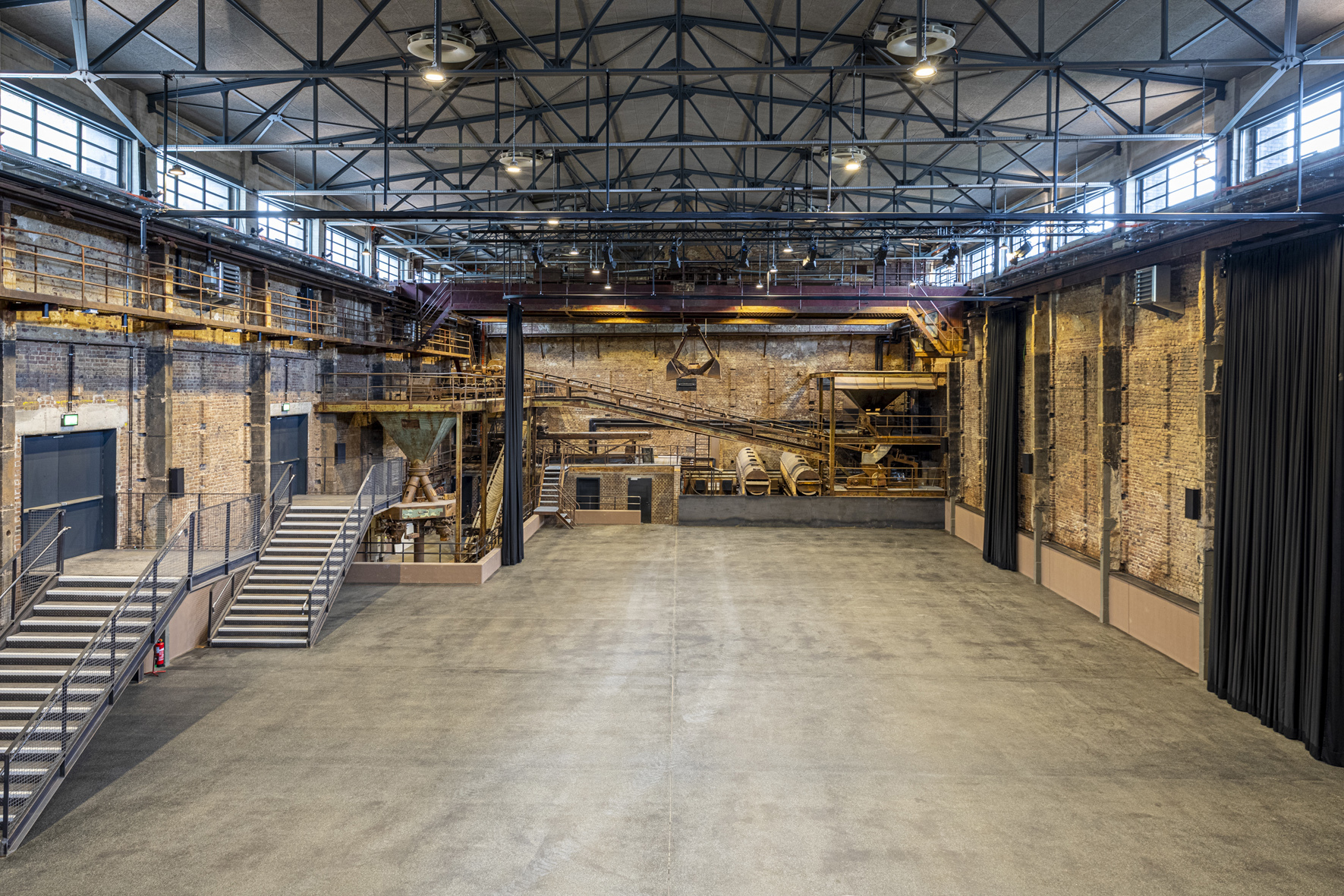 - In den Ausstellungsräumen kontrastieren die gut ausgeleuchteten Exponate visuell mit der Umgebung.