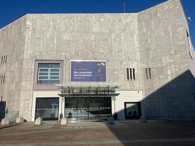 - Der Name der Liederhalle ist von außen klar erkennbar.