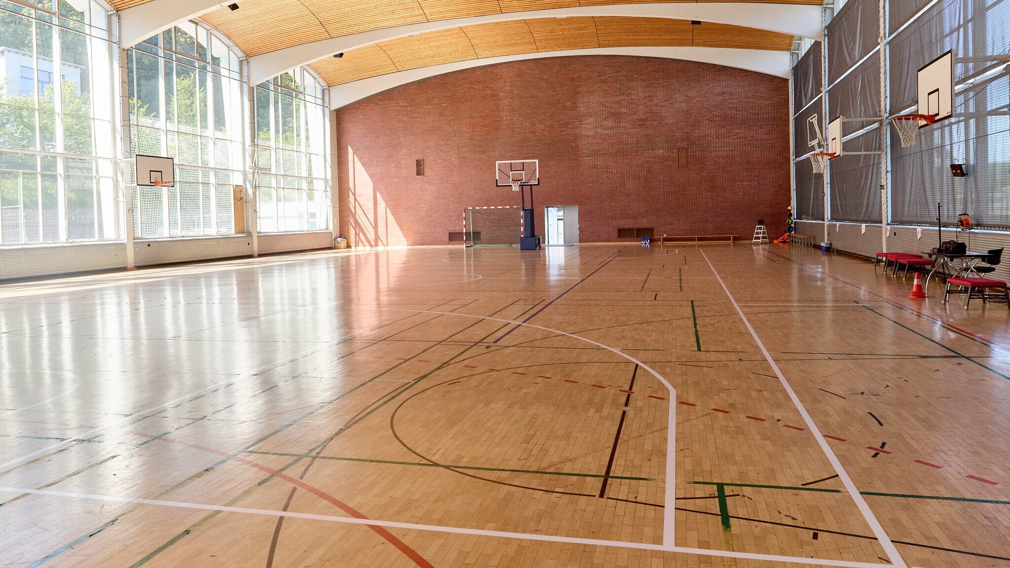 - Die Namen der Sporthallen sind von außen klar erkennbar.