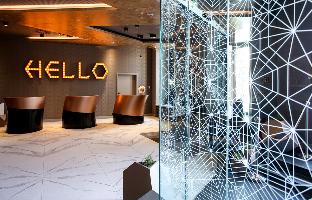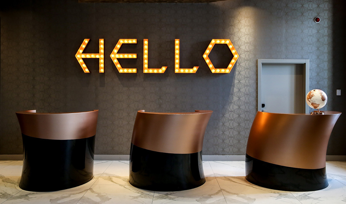 - Der Rezeptionscounter ist von der Eingangstür aus direkt sichtbar.
