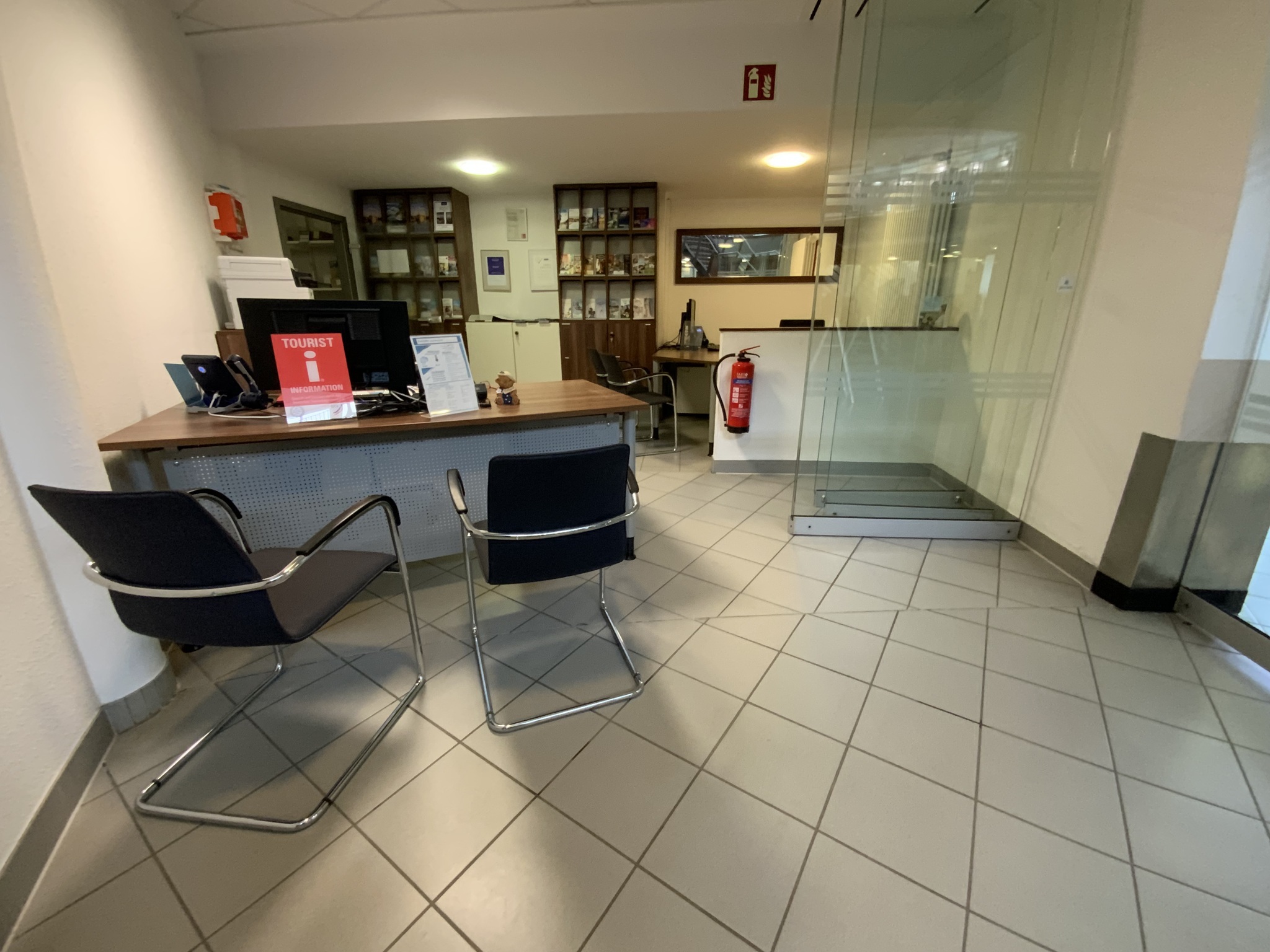 - Der Infocounter ist von der Eingangstür aus direkt sichtbar.