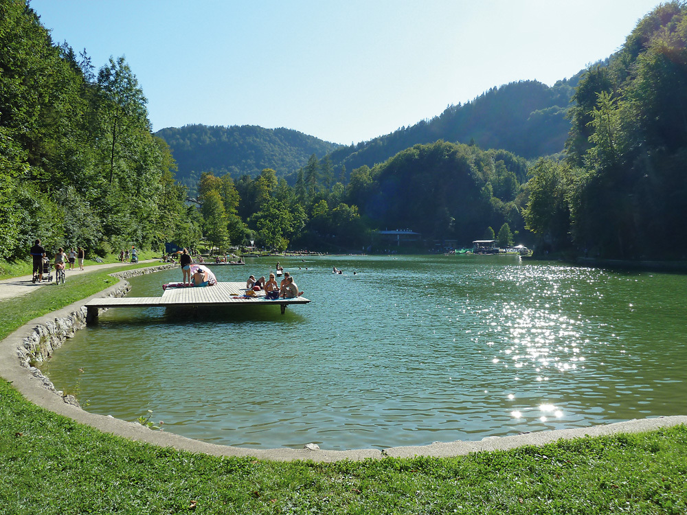Der Luegsteinsee in Oberaudorf mit Wanderweg und barrierefreiem Badeangebot ist besser mit dem Auto zu erreichen.
